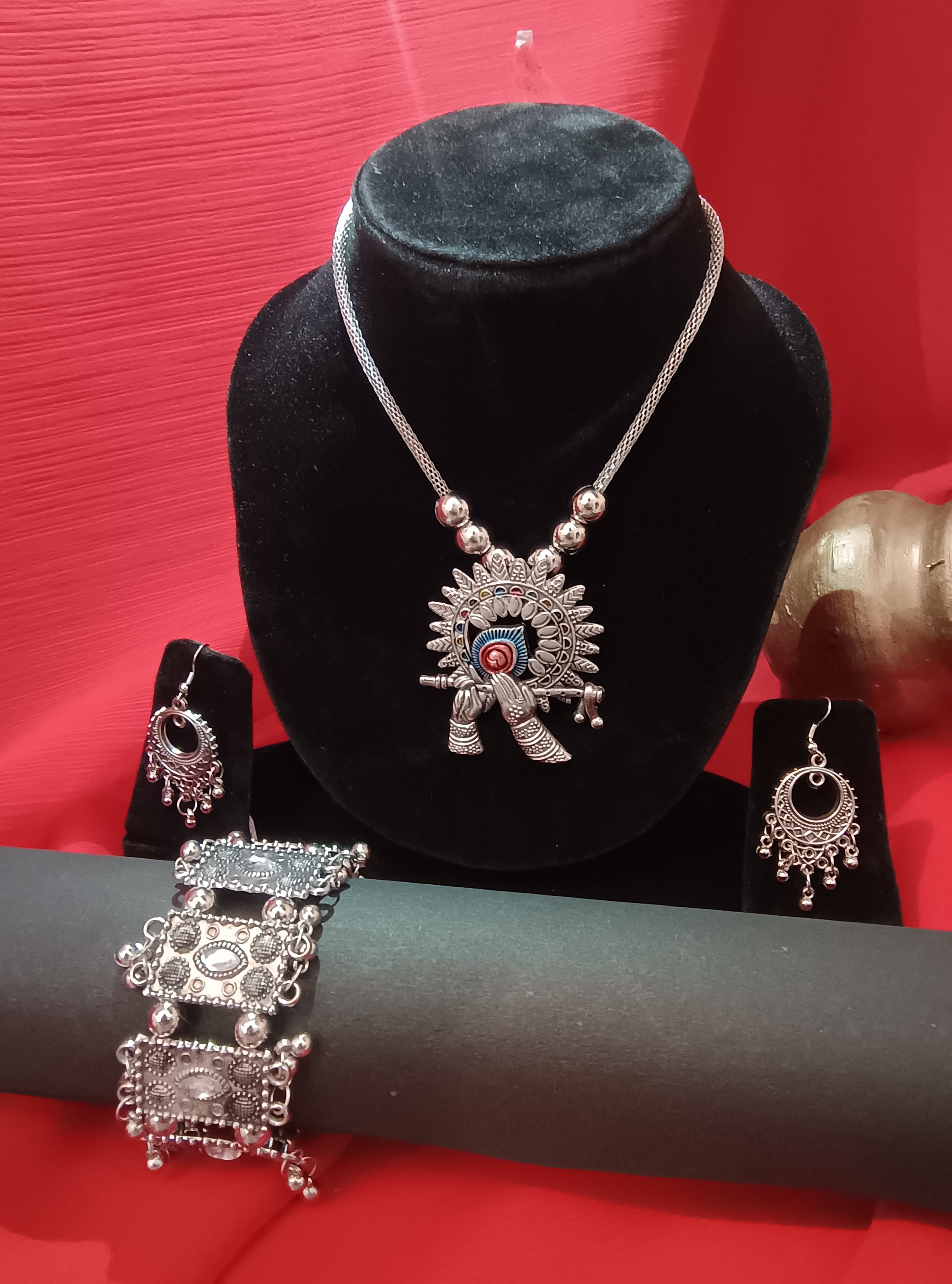 Mayantiie Oxidized Silver Jewelry Set – Pendant, Earrings & Bracelet Combo