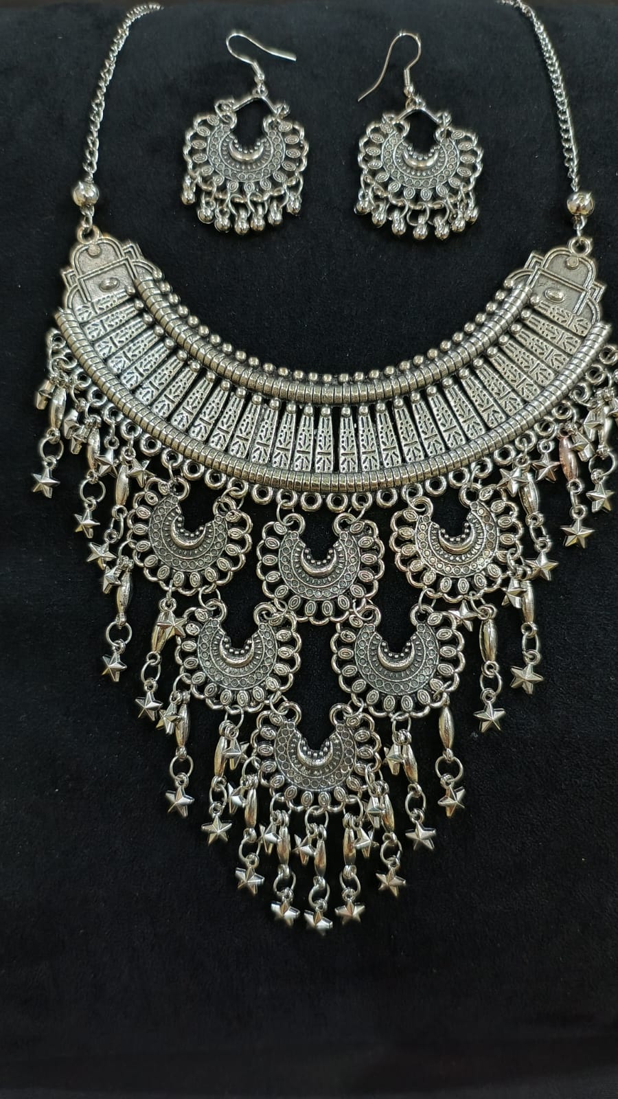Enhance your look with this stunning Oxidized choker Set, a perfect blend of traditional craftsmanship and contemporary charm. Crafted from high-quality alloy with an exquisite oxidized silver finish, this set exudes elegance and sophistication.