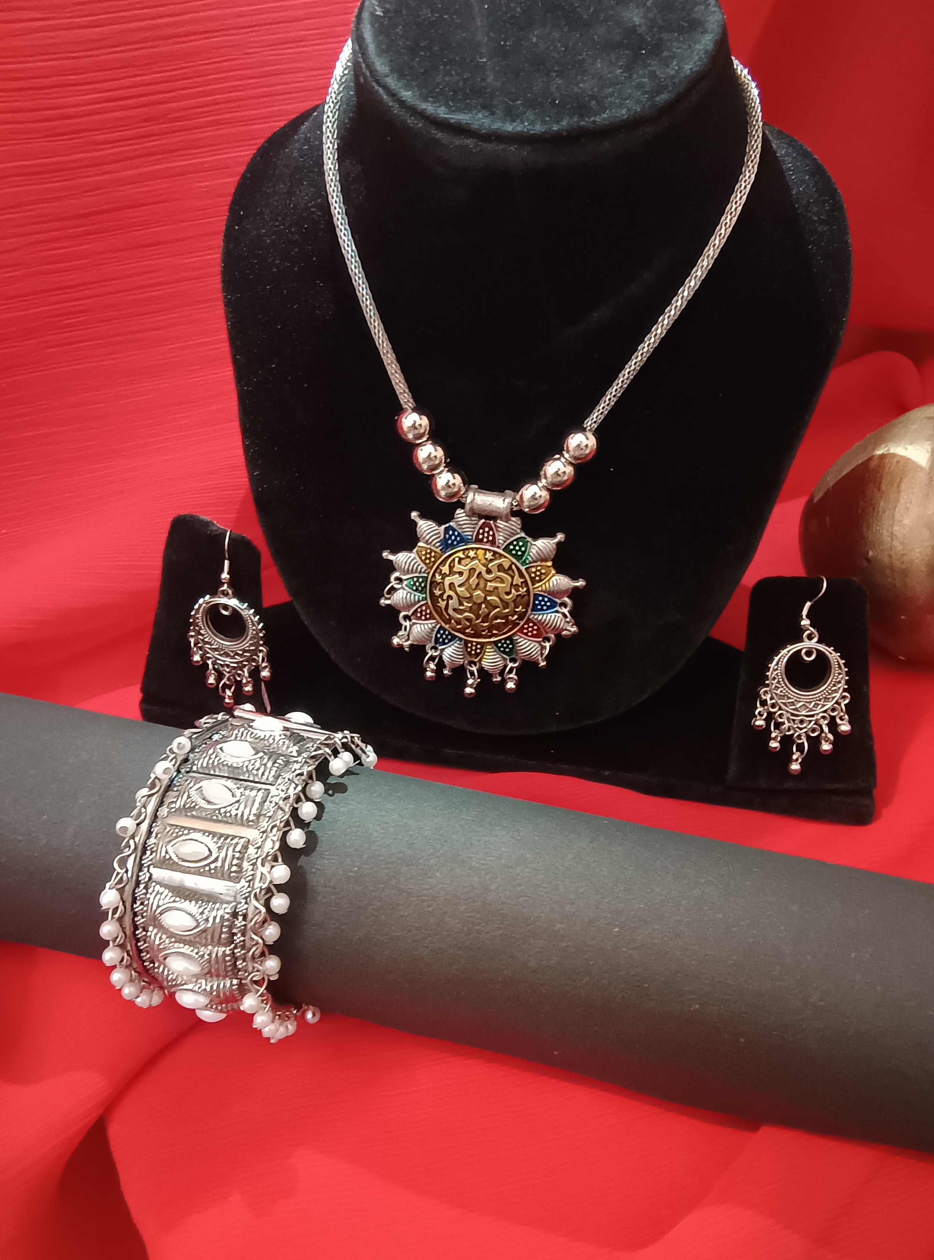 Mayantiie Oxidized Silver Jewelry Set – Pendant, Earrings & Bracel – Trendzi Bazar