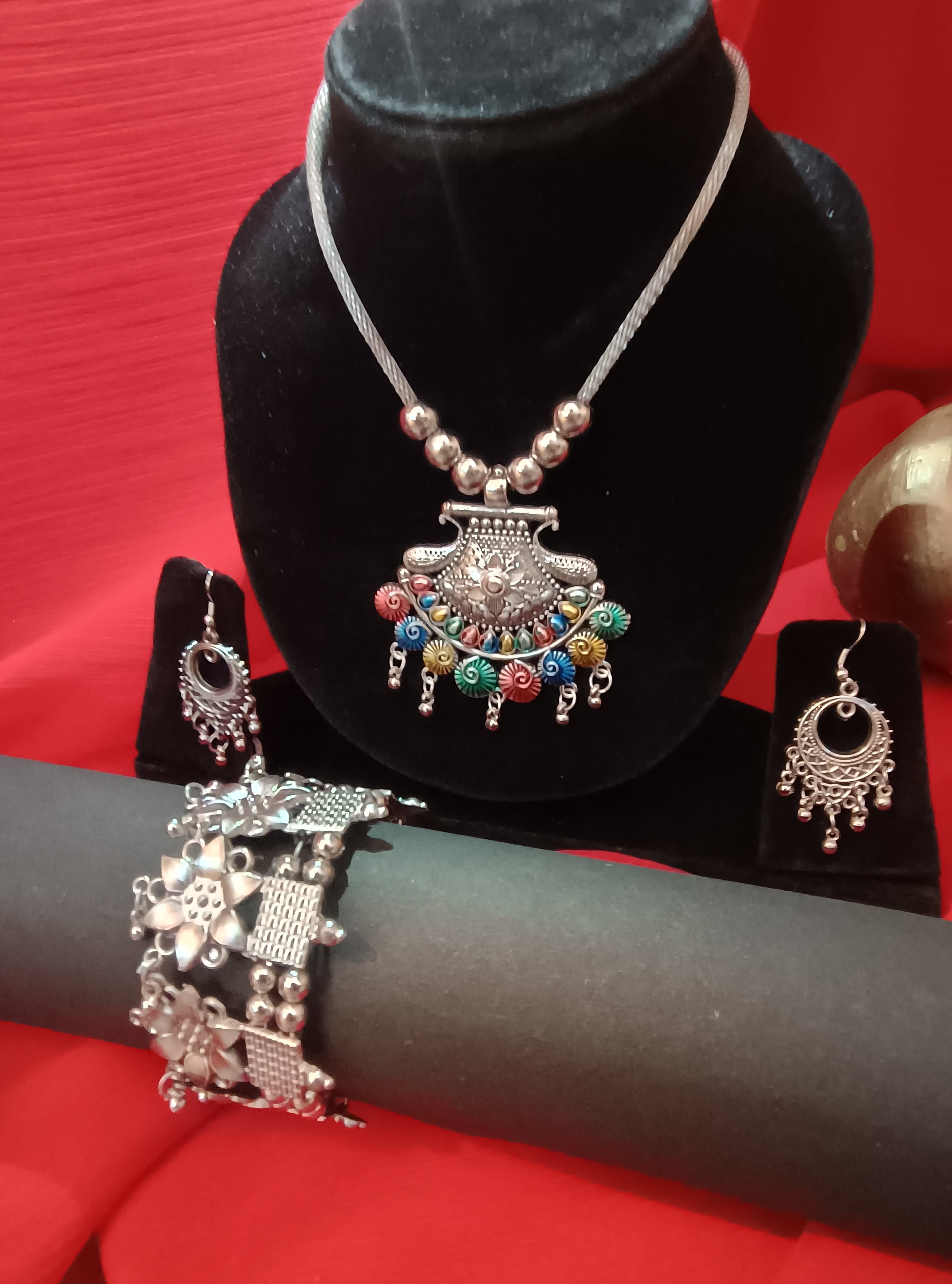 Mayantiie Oxidized Silver Jewelry Set – Pendant, Earrings & Bracel – Trendzi Bazar