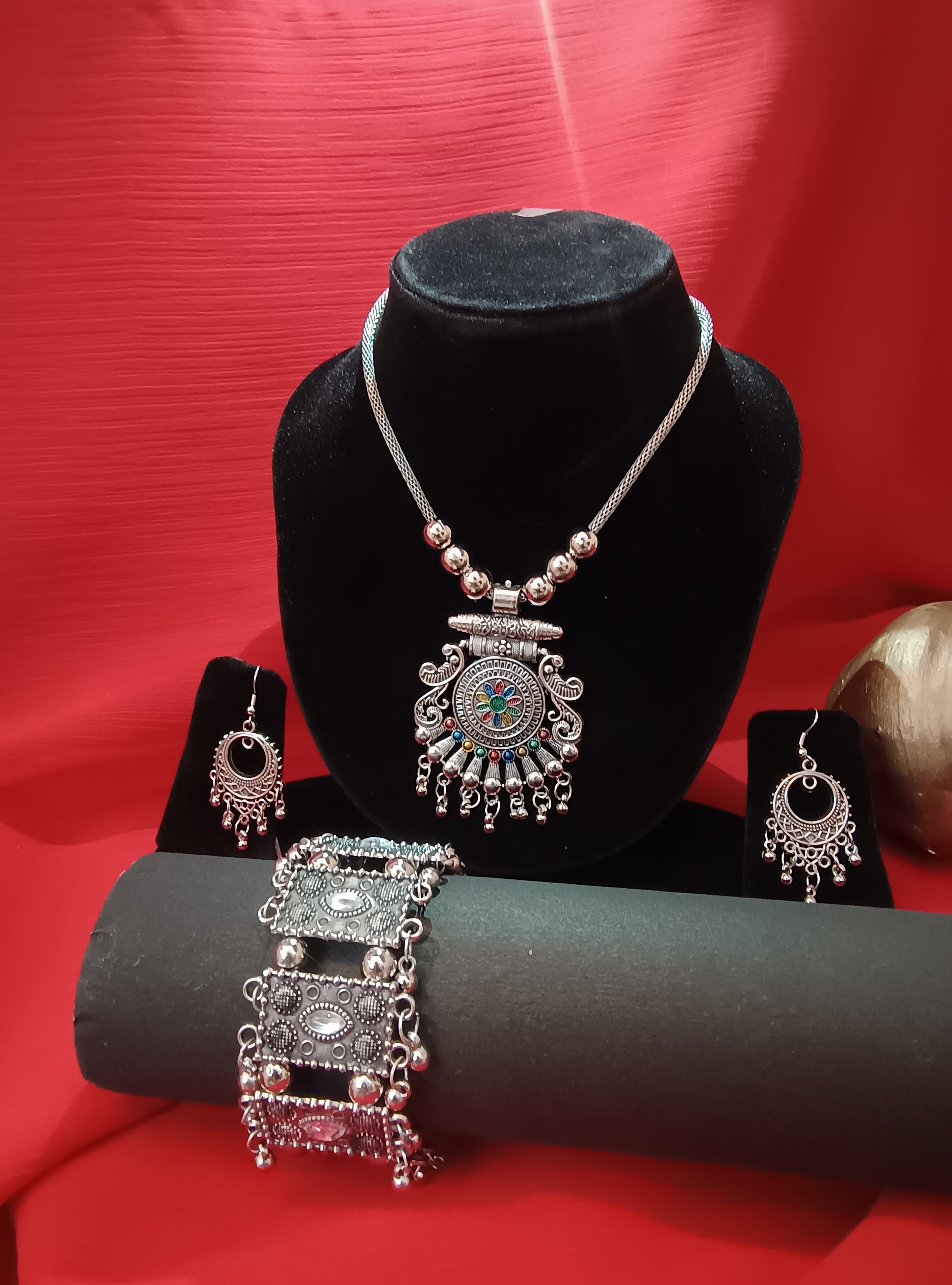 Mayantiie Oxidized Silver Jewelry Set – Pendant, Earrings & Bracelet Combo