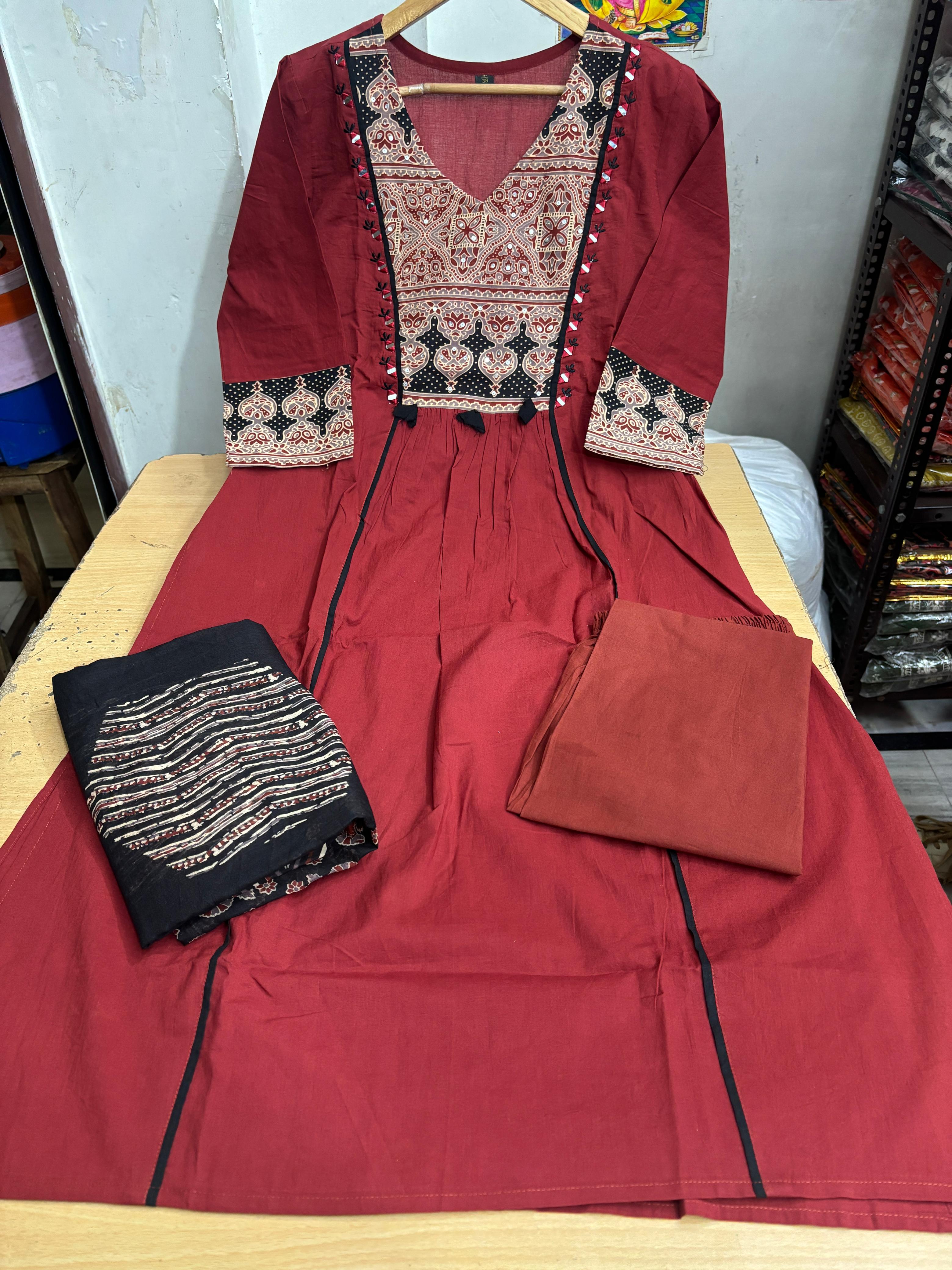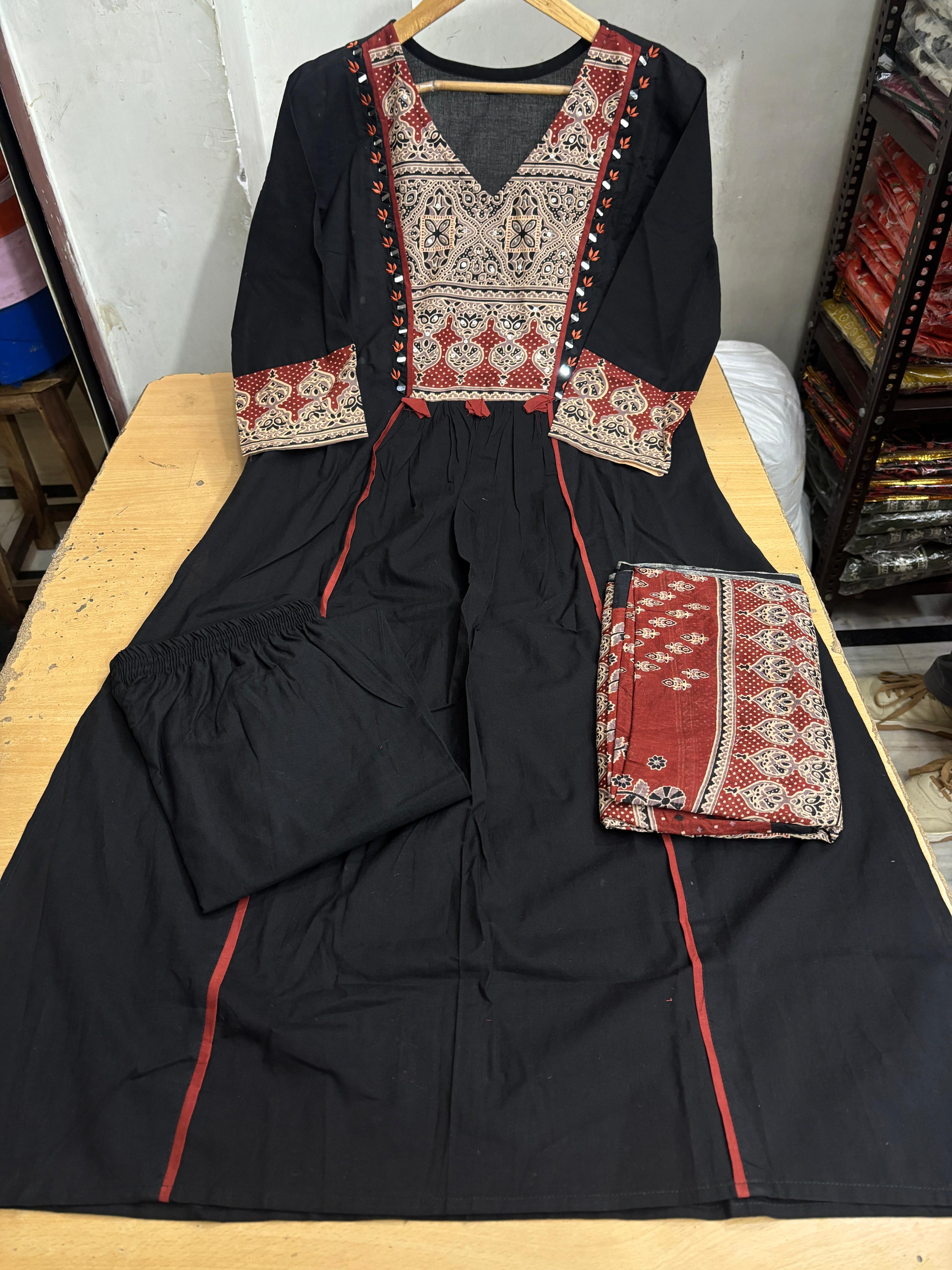 Embrace timeless tradition with this beautifully designed Jaipuri Touch Cotton 3-Piece Kurti Set, crafted to bring out your graceful charm with every step. Perfect for festive occasions, family gatherings, office wear, or casual outings, this outfit blends ethnic beauty with everyday comfort.